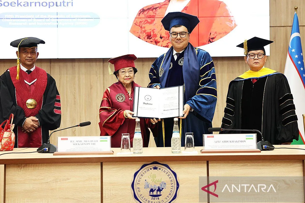 Melansir situs berita Antara, Presiden Kelima RI Megawati Soekarnoputri kembali mendapat anugerah gelar profesor kehormatan pada bidang pariwisata dan warisan budaya dari Silk Road International University of Tourism and Cultural Heritage (IUTCH) di Samarkand, Uzbekistan, Sabtu.